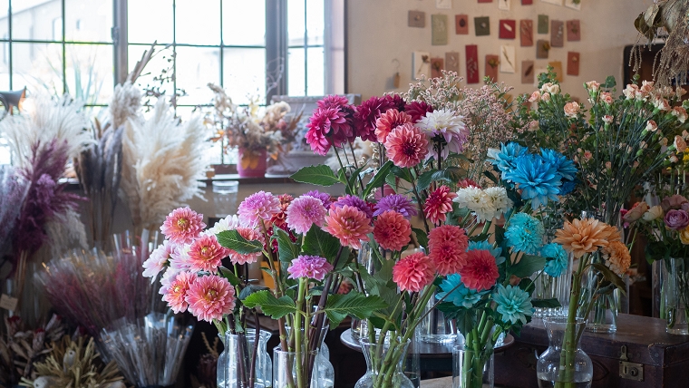 券内外にて、店舗や施設・ご婚礼の装花、お花の講習会なども行っています。