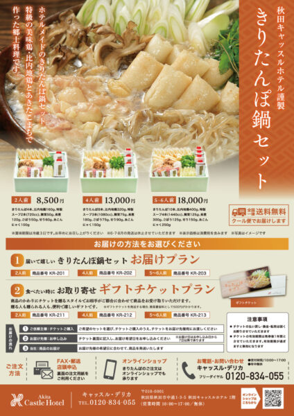 全国にファンを持つ、ホテルメイドのきりたんぽ鍋をどうぞお召し上がりください。