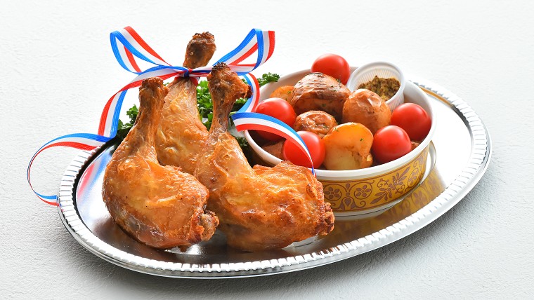低温でじっくりと火を入れた鶏もも肉をパリッと焼き上げました。