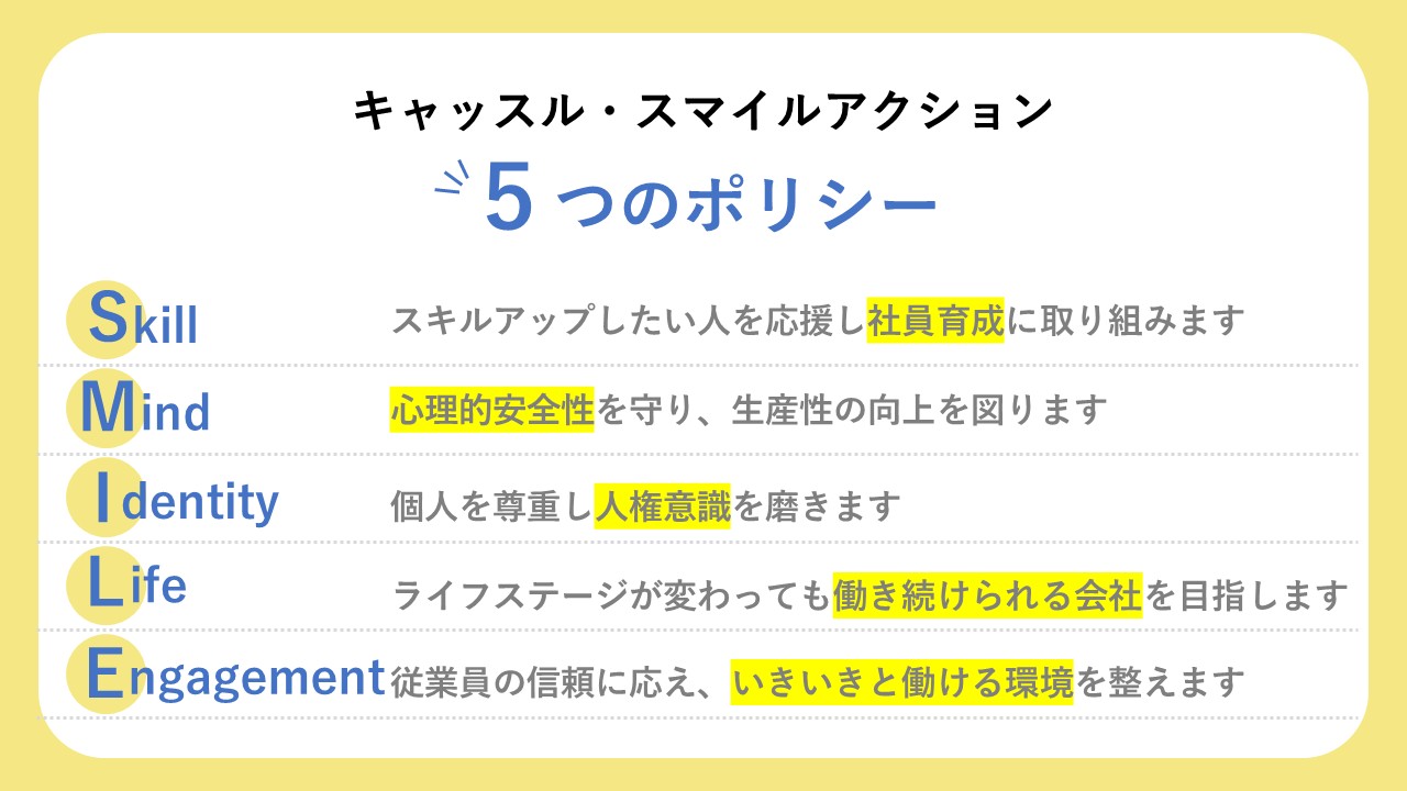 ▲キャッスル・スマイルアクションの指針として、5つのポリシーを設定