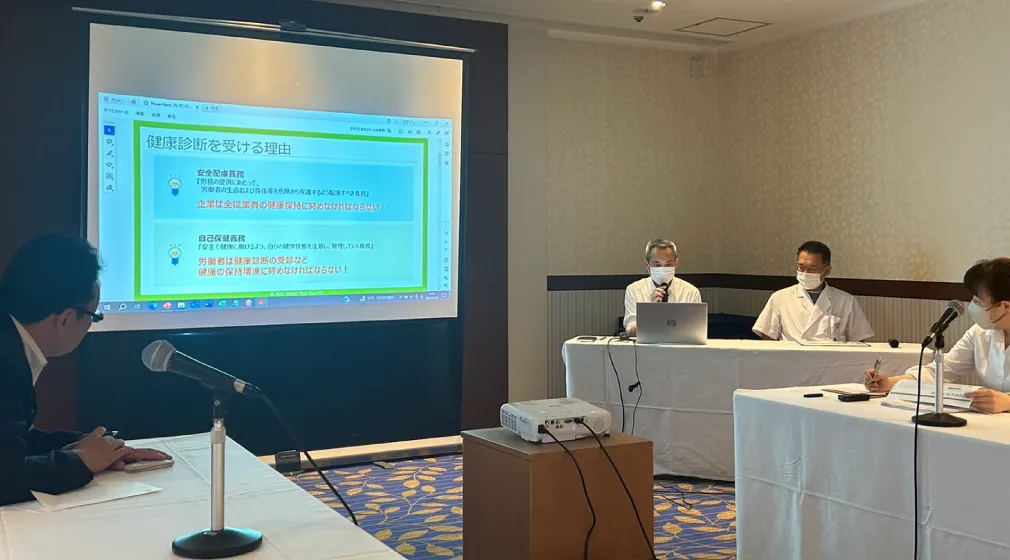 毎月1回、産業医と委員(各セクションの代表者)が集まり、社内の安全や衛生管理についての情報共有を行っています。