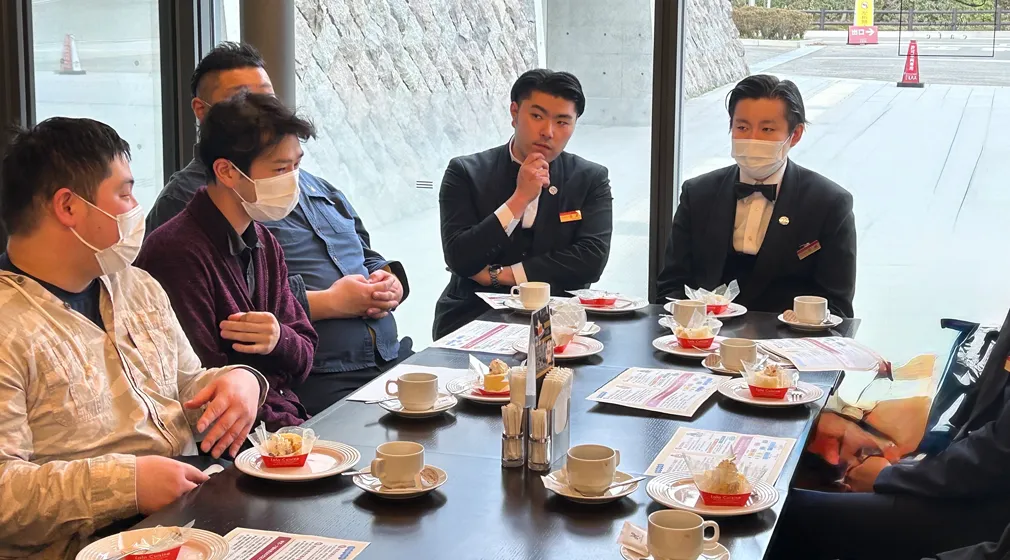 取得経験者とこれから取得の機会がある若手スタッフとの座談会を開催。お茶を飲みながらリラックスした雰囲気で、話しやすい空間づくりを意識。